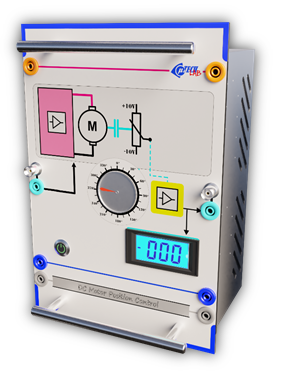 Le dispositif REG-DCM est un accessoire de kit didactique d’asservissement et se compose d’un moteur/génératrice/capteurs additionnel monte sure une boite d’alimentation et interface complète.
