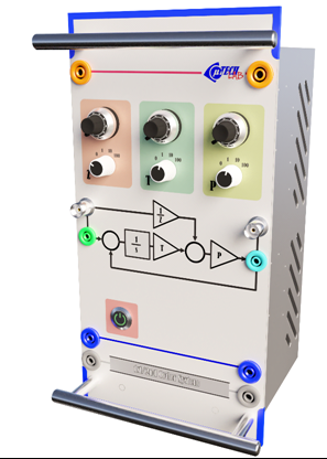 Ce module permettant la réalisation d’une large gamme de correcteurs pour l’asservissement continu sur des systèmes divers : moteur, système de chauffage, lévitation magnétique. Cette maquette permet aux étudiants de réaliser facilement différents asservissements en interconnectant les blocs entre eux et en ajustant les valeurs des paramètres de sorte à obtenir les fonctions de transfert calculées en préparation.