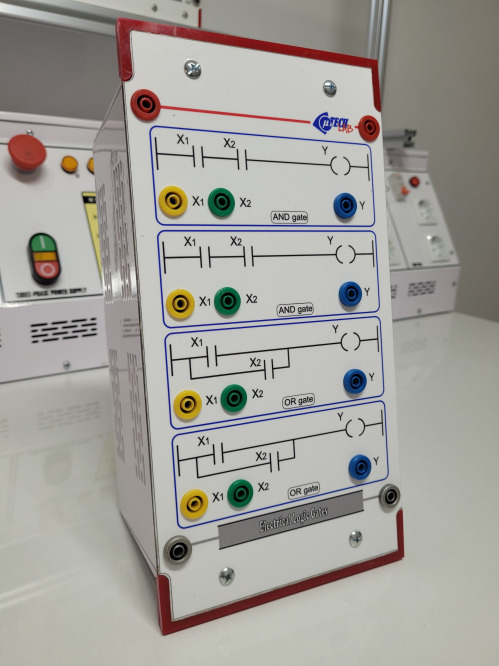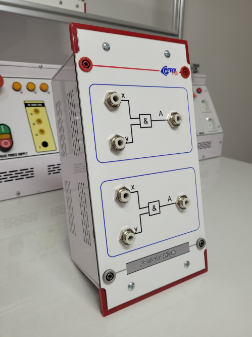 Le module de porte logique électrique est un dispositif comportant quatre cases, chacune avec un circuit logique spécifique. Les deux premières cases contiennent un circuit AND, qui produit une sortie haute uniquement lorsque tous les signaux d'entrée sont hauts. Les deux dernières cases contiennent un circuit OR, qui produit une sortie haute si au moins un des signaux d'entrée est haut.
