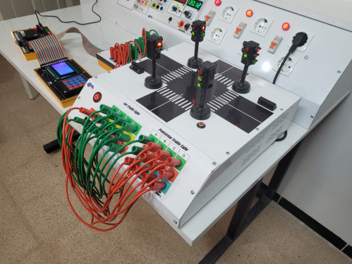 Le PLC-CTL est une maquette de simulation qui représente une intersection entre une voie principale et une voie secondaire, aide à organiser la circulation des voitures et les piétons par un système automatique représenté par un système constituer d’un bouton poussoir qui représente l’appel piéton qui veut traverser la route et un capteur de proximité qui gère les feux de signalisation à travers un signal et 28 LED chacun est raccorder avec un feu de signalisation