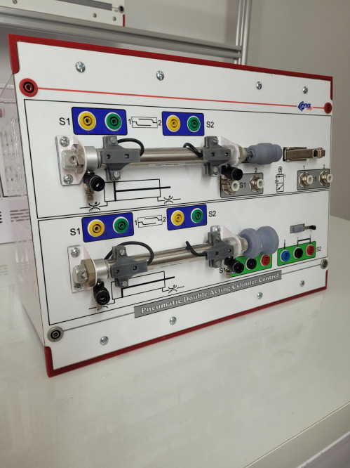Le module des Vérins à double effet (fins de course Électriques & Pneumatiques) est un ensemble d'équipements utilisés dans les systèmes de vérins pour contrôler le mouvement et la position des vérins. Ce module comprend des actionneurs pneumatiques, ainsi que des dispositifs de détection de fin de course (pneumatique et électrique). Les fins de course électriques détectent la position du vérin en utilisant des capteurs électriques, tandis que les fins de course pneumatiques détectent la position en utilisant des capteurs pneumatiques. Ce module permet de contrôler avec précision les déplacements des vérins et d'assurer leur sécurité en évitant les mouvements excessifs ou non désirés.