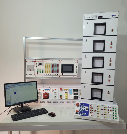 Un ascenseur à cinq étages, destiné à des fins pédagogiques, offre une connectivité polyvalente avec un ensemble de 50 entrées/sorties via des douilles de 4mm, permettant une expansion avancée. Cette configuration facilite l'exploration pratique des concepts d'automatisation, de contrôle et de gestion des systèmes dans un contexte éducatif. Avec un total de 28 sorties (capteurs) et 14 entrées (actionneurs), il est utilisé dans diverses applications telles que la conduite de systèmes automatisés par GRAFCET via une API ou un PC avec logiciel, ainsi que dans les domaines de l'informatique pour la commande en assembleur ou en langage évolué d'un processus séquentiel, et de l'électronique et de l'automatisme.