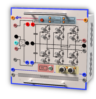Le module didactique onduleur de tension deux niveaux à IGBT/MOSFET permet aux étudiants de comprendre le concept de la conversion DC/AC. Cette variante avec commande externe peut être combine avec unité de commande par µC, µP, DSP, FPGA…permettant à l’utilisateur de concevoir la technique de commande approprie pour leur application soit en boucle ouverte ou fermée.