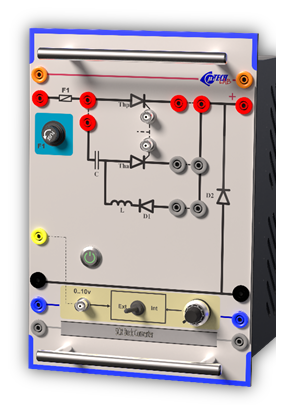 La module didactique du hacheur série a Thyristors (abaisseur de tension) est très utile pour les étudiants de comprendre le concept de la méthode amorçage et de blocage forcé des thyristors (Circuit à courant continu) et le fonctionnement de la conversion DC/DC sur diverses configurations de charge.