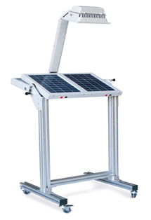 Le rack de modules solaires se compose d'un module solaire polycristallin et d'un projecteur halogène comme simulateur solaire.