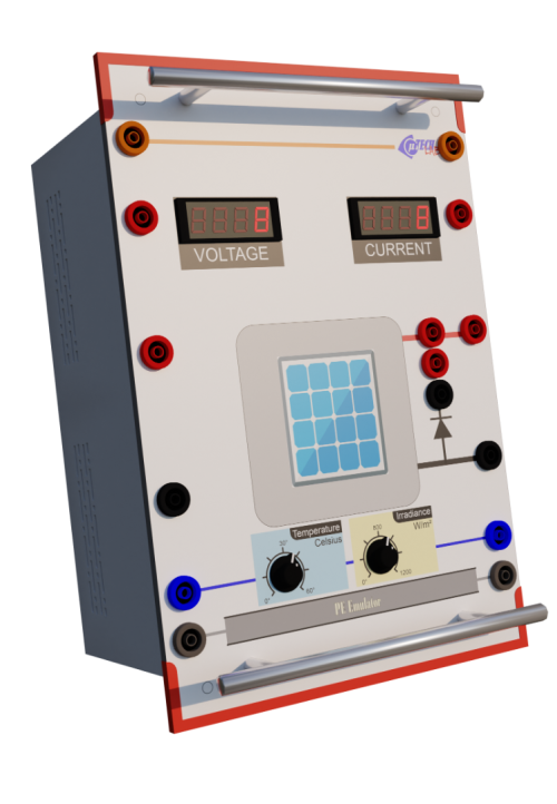 RE-PVE émule le comportement électrique du panneau solaire en silicium dans diverses conditions, emplacements d'installation, et donne la liberté d'effectuer des expérimentations impossibles par temps nuageux