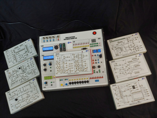 Tous les équipements nécessaires aux expériences de circuits électriques/électroniques tels que l'alimentation, le générateur de fonctions, les compteurs numériques, l'oscilloscope sont installés sur l'unité principale pour les besoins de l'expérience. Les sujets tout à fait essentiels de l'apprentissage des circuits électriques/électroniques sont étudiés par différents modules.