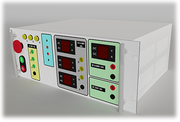 L'ELE-PDC est un bloc d'alimentation de puissance variable à courant continu destinée a l'alimentation des moteurs à courant continu à l'aide de deux sorties: une sortie de tension variable 0-250V (0-600V on option) et une sortie de courant réglable (pour excitation).