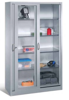 High steel cabinet with glass sliding doors
