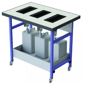 Mobile trolley specially designed for the temporary storage and disposal of used chemical products. Allows you to safely manage the disposal of your chemical waste to the collectors of your establishment. Has 3 recovery tanks connected directly to 10 L polyethylene storage containers, thus avoiding any contact with the products.