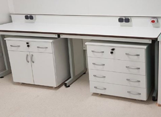 • Mobile boxes under benches fitted with hinged doors, drawers and shelves.