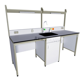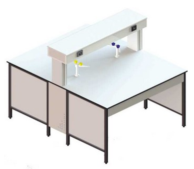 Central wet bench with backsplash / shelf