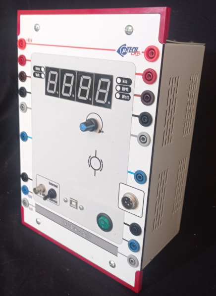 L’unité de commande du frein à poudre permet de mesurer la vitesse de rotation et le couple développé d’un moteur électrique. Elle fournit également la tension d’excitation pour le frein. La vitesse et le couple sont visualisés par des instruments embarqués.